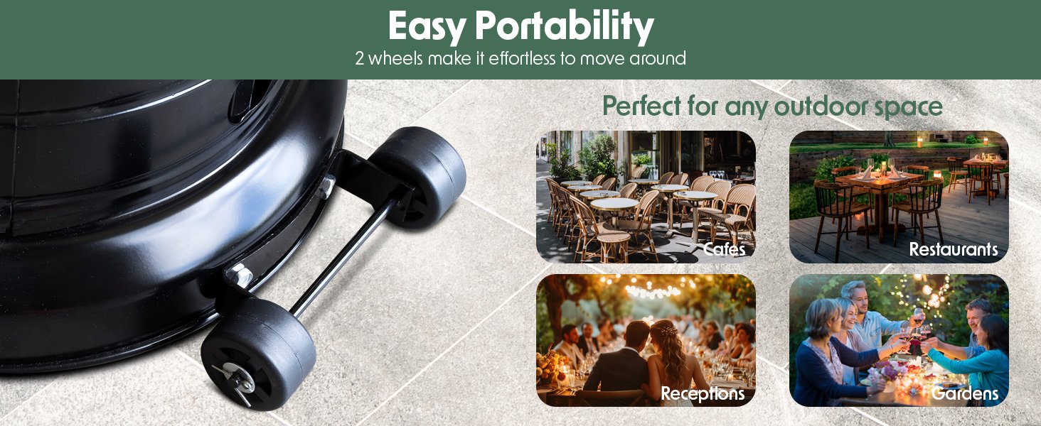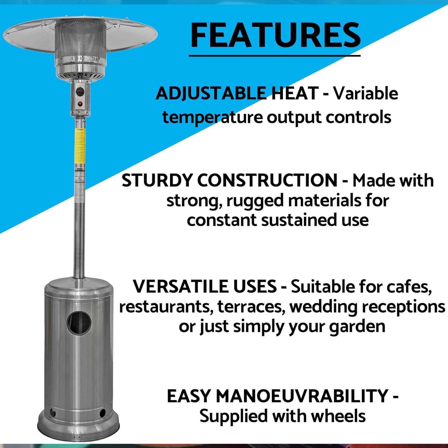 - Versatile Uses – Excellent heat output for outdoors, suitable for cafes, restaurants, terraces, wedding receptions or just simply your garden.