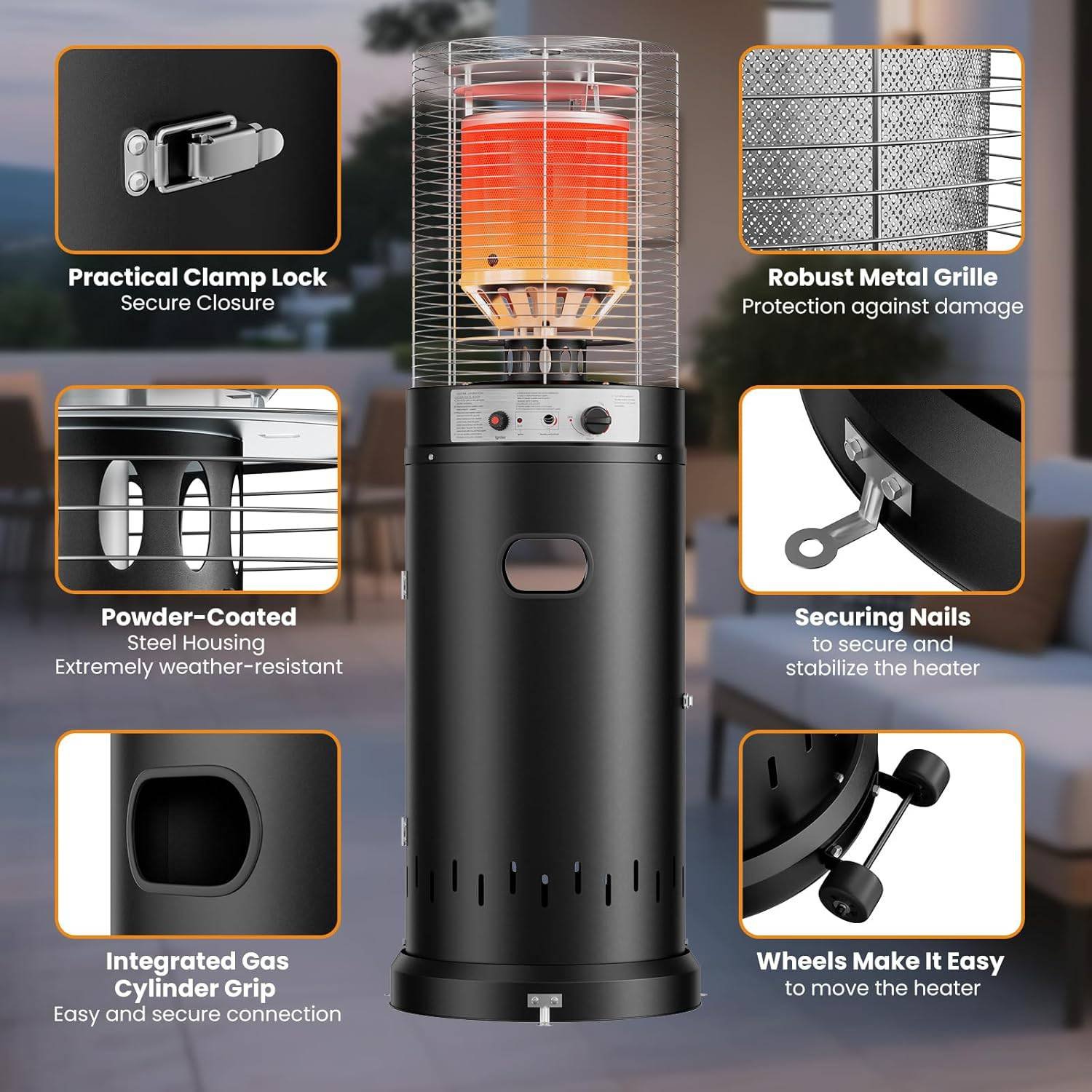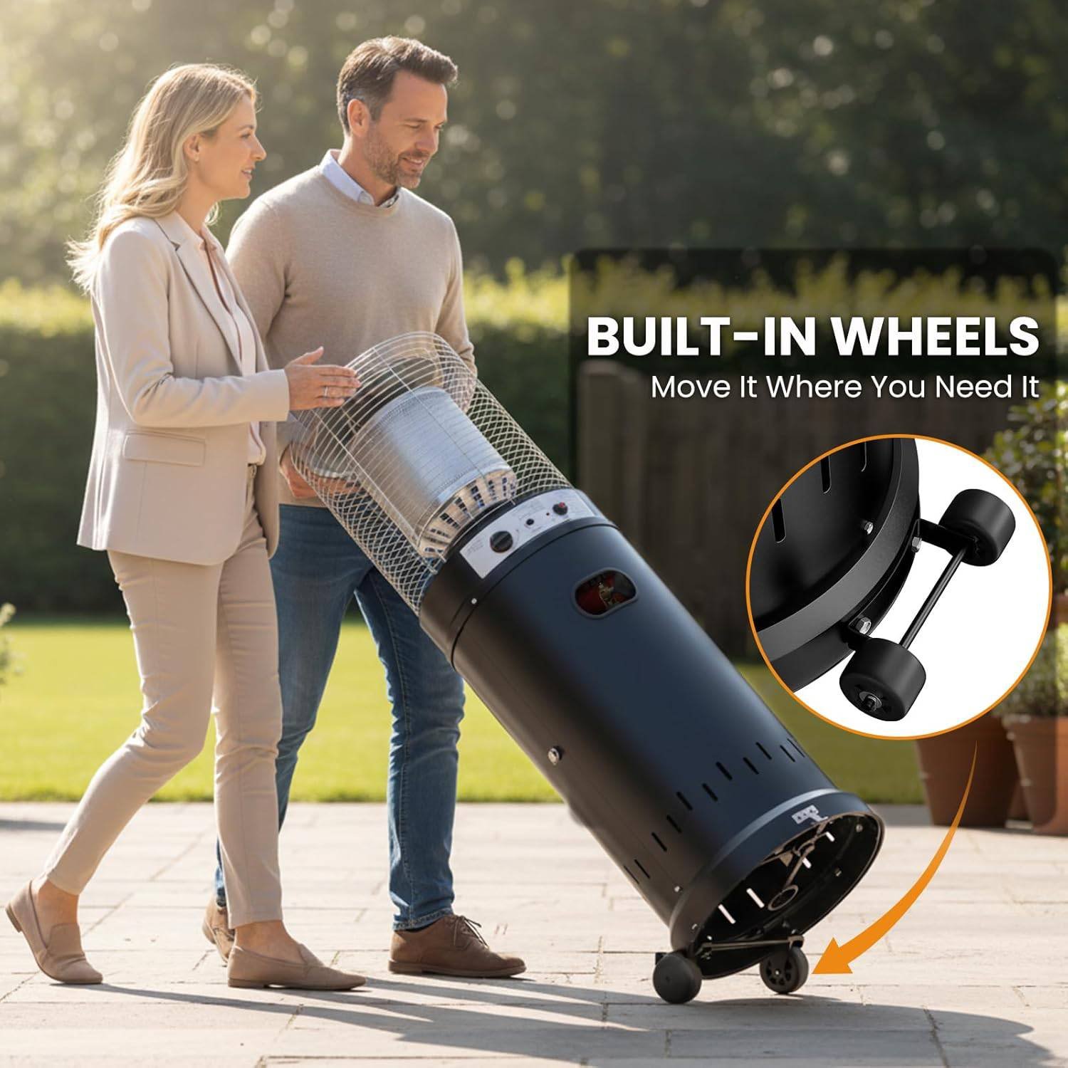 - Portable & Easy to Move: Designed with smooth-rolling caster wheels and a compact frame, this heater can be effortlessly moved across decks, terraces, or restaurant patios. When not in use, simply roll it into storage for convenient space-saving