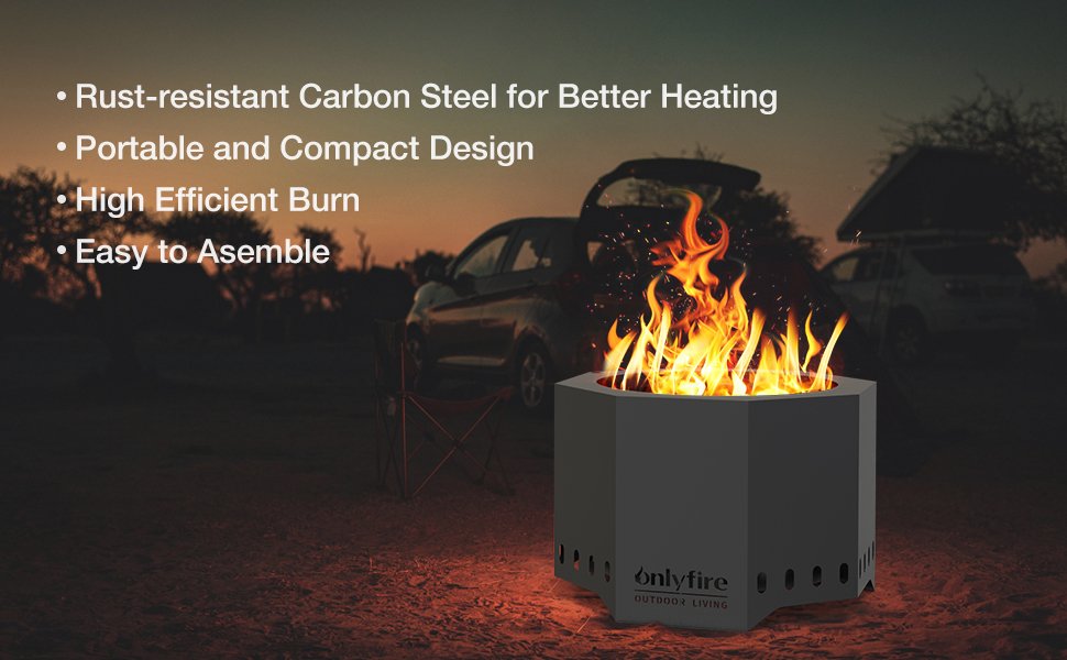 Onlyfire 26″ Octagonal Smokeless Fire Pit Wood Burning with Holes