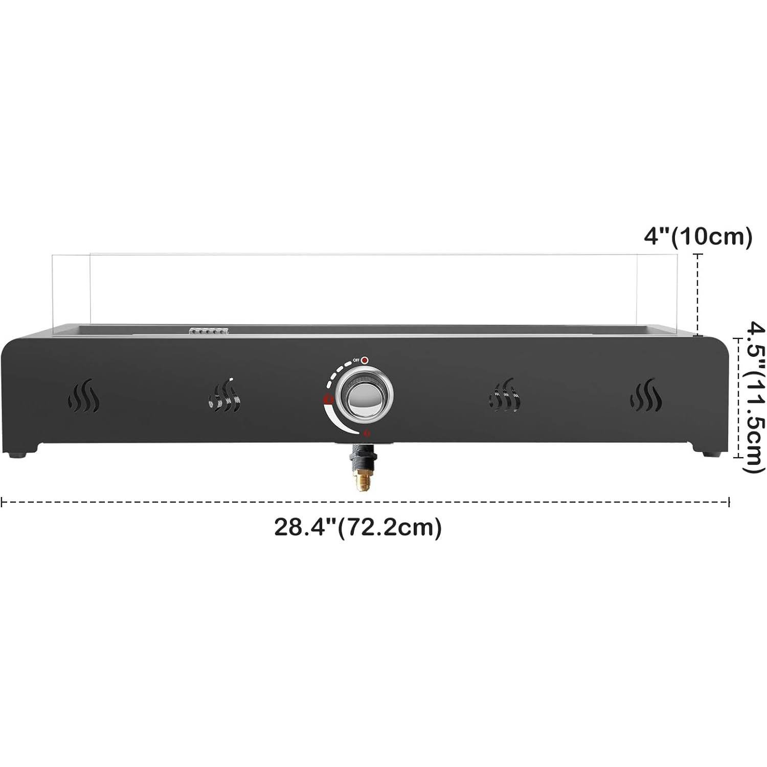 - Compact & Portable Design: Measuring 72.2 × 22.4 × 11.5 cm, this rectangular tabletop gas fire pit is perfect for patios, balconies, and garden tables, providing warmth without occupying much space.