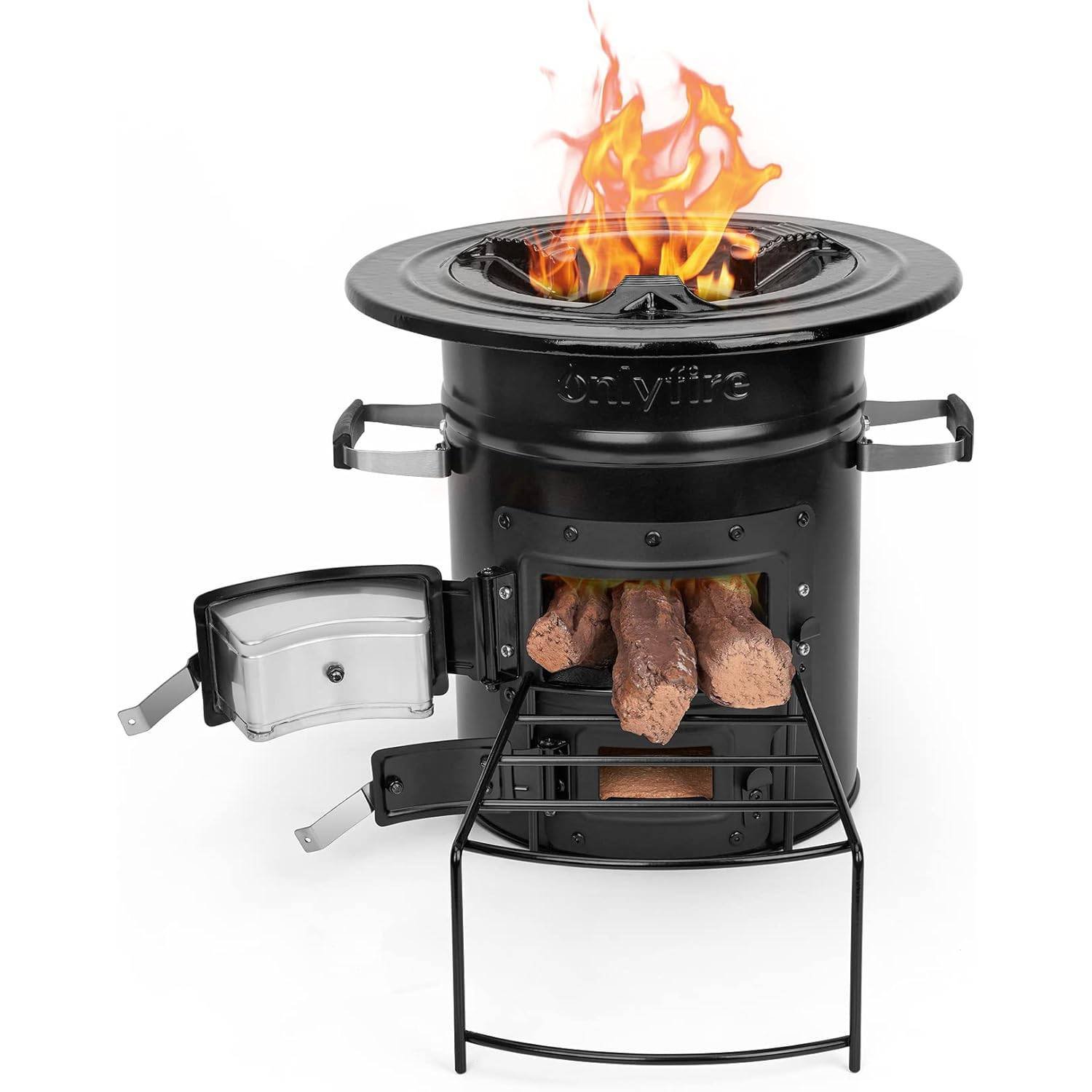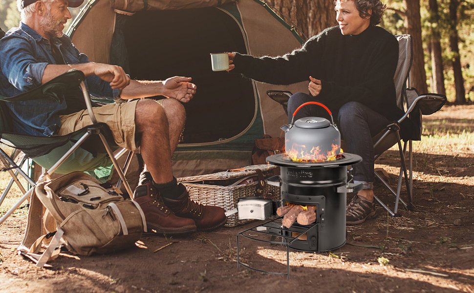 - 【Meet all Your Outdoor Cooking Needs】 – The camping wood stove has a durable three-pronged cast iron stove top that can support pots and pans well, such as flat, rounded bottom pot, frying pans, grill grid. You can boil water, cook food, or make a nice fire for heating.