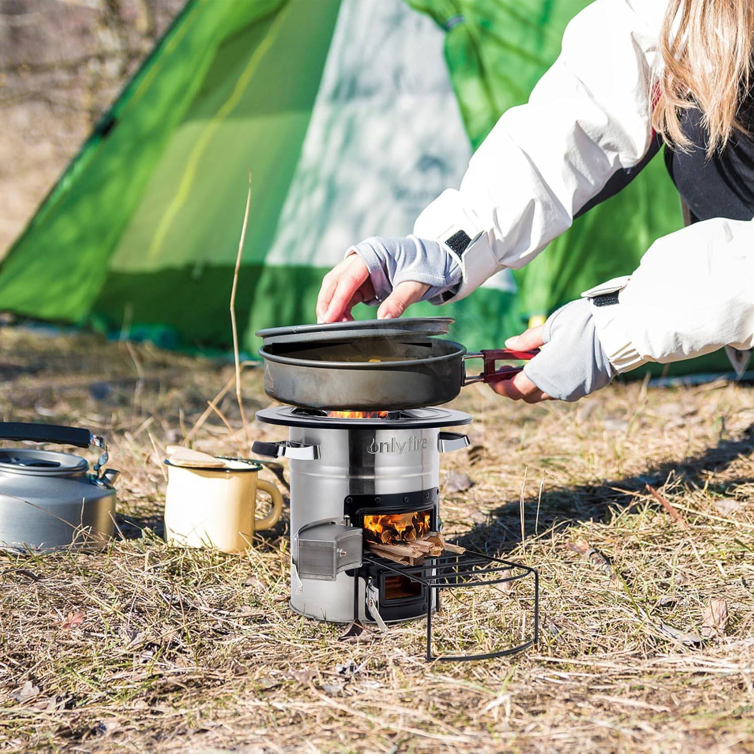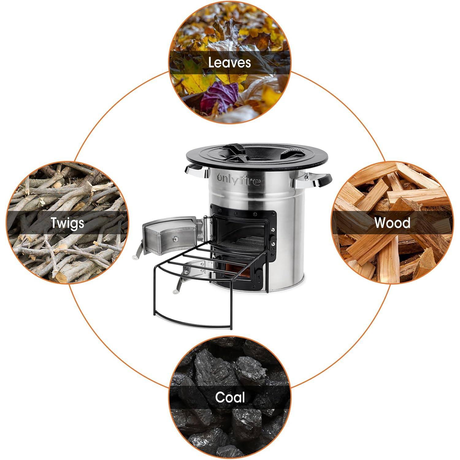 - 【Meet all Your Outdoor Cooking Needs】 – The camping wood stove has a durable three-pronged cast iron stove top that can support pots and pans well, such as flat, rounded bottom pot, frying pans, grill grid. You can boil water, cook food, or make a nice fire for heating.