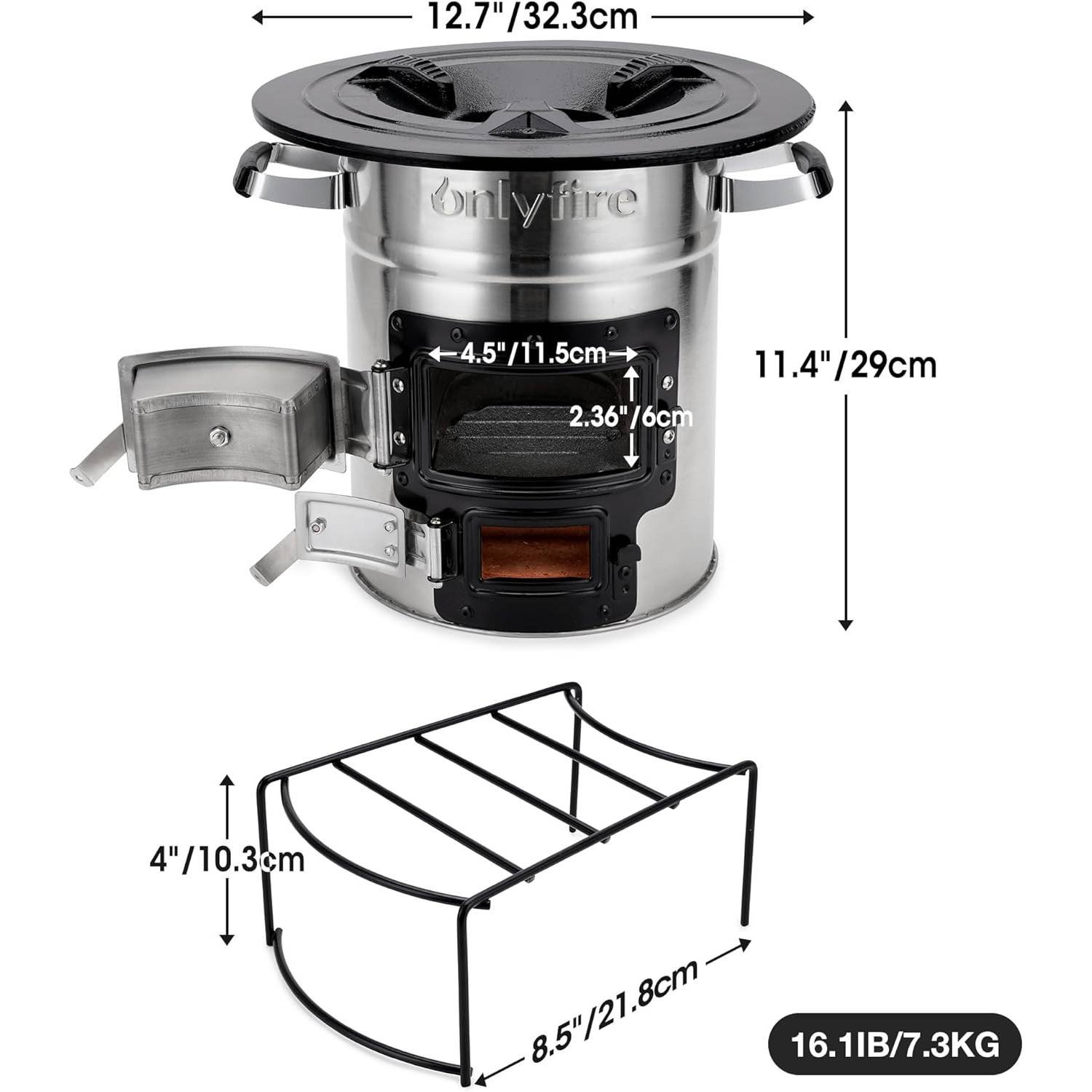 - 【Portable and Compact Design】 – The wood-burning rocket stove comes with stainless steel handles with silicone grips make it more easier and convent to move it around. And the wooden stick support enables longer firewood easier to burn.