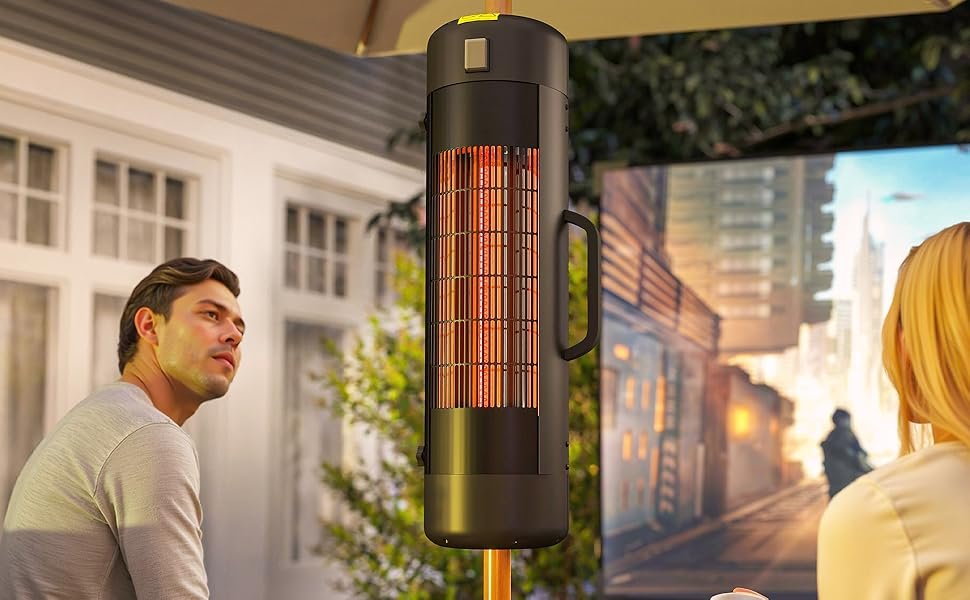 - Hanging design for umbrella use: Cleverly designed to fit umbrella poles (25-70 mm), this patio electric heater allows you to extend your time outdoors, enjoying cosy warmth during gatherings or dinners on the terrace.
