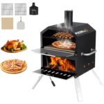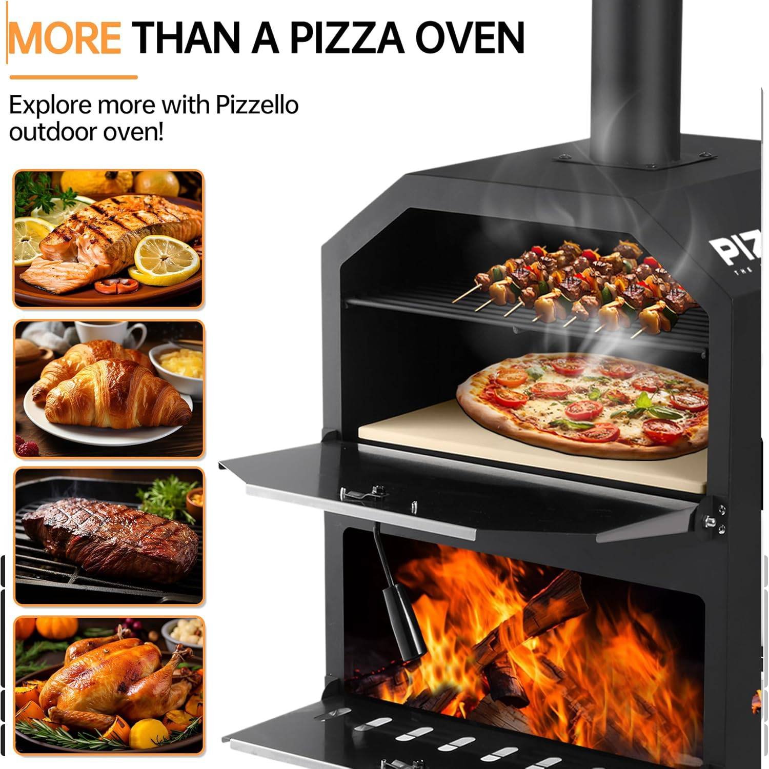 - 🍕Large 2-Layer Cooking Capacity – Pizzello 16-inch outdoor pizza oven provides more rich cooking space than 12 inches. It features a 2-layer design, allowing you to cook 16″ pizza and grill steak, fish, or vegetables simultaneously. In addition, the center cooking rack is removable to accommodate more oversized food items, even a whole turkey!