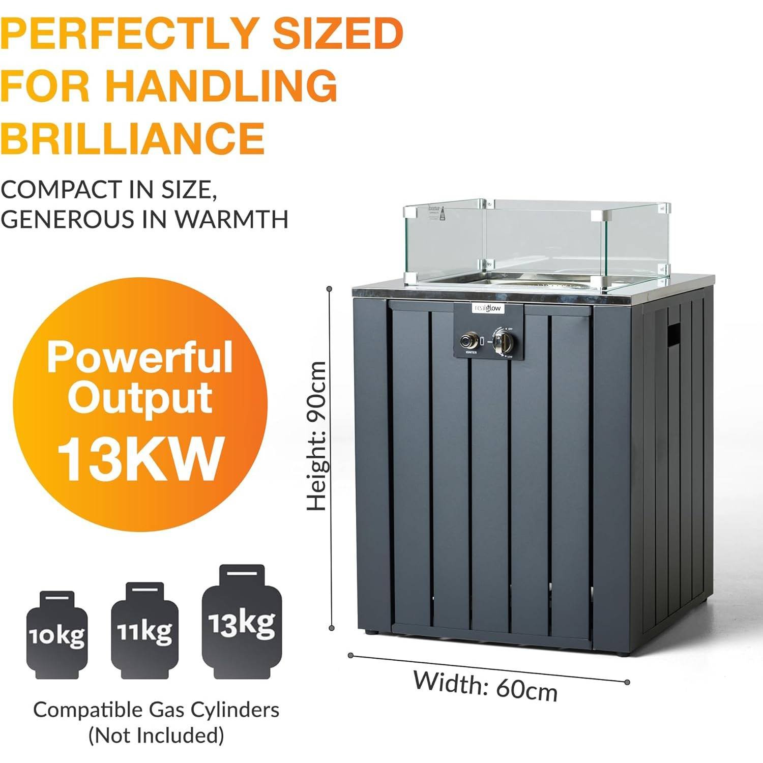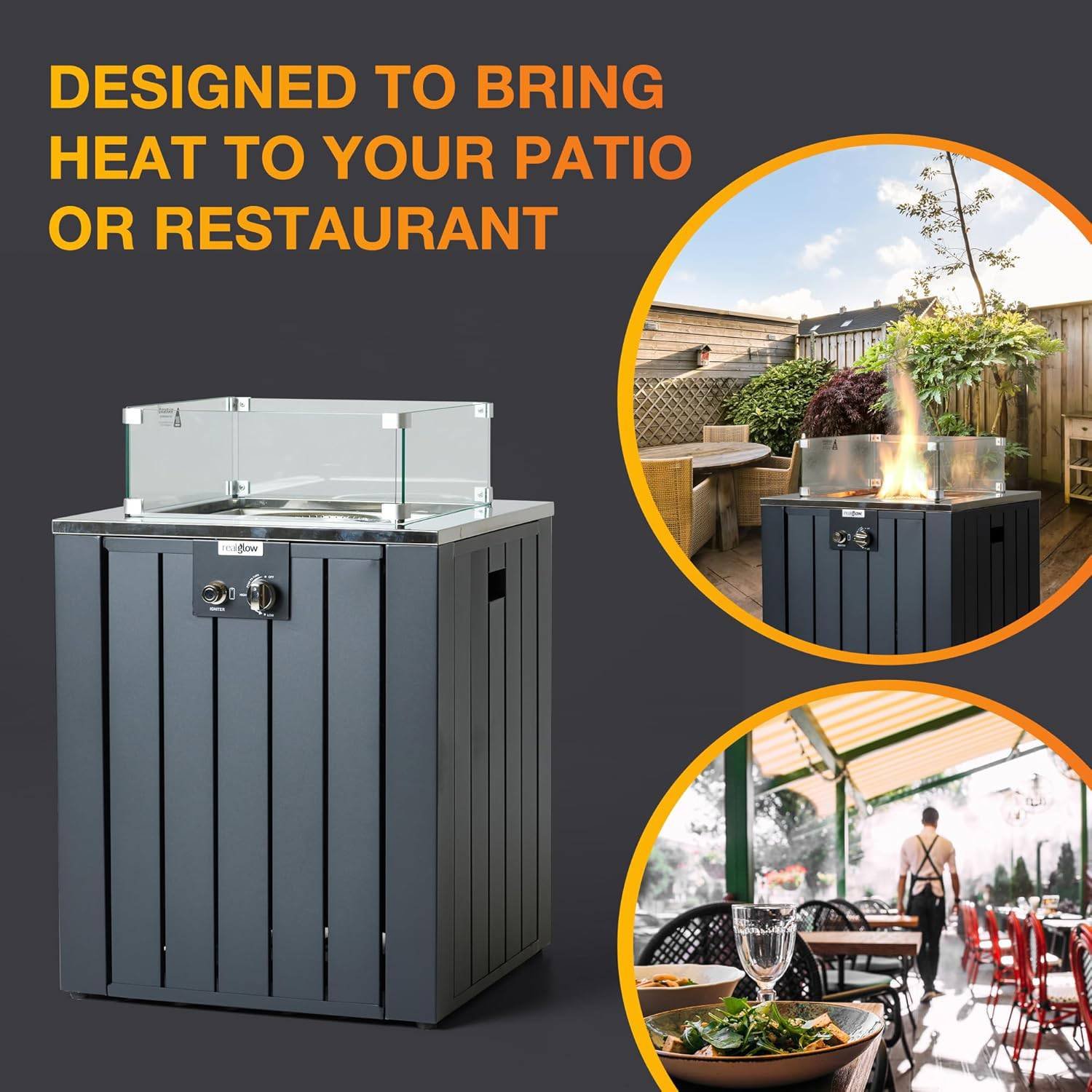 - Beautifully Crafted – Our patio gas heaters have been stylishly made with a sleek and minimalist design to complement your garden furniture. Glass rocks and a glass wind shield complete a refined look that sits elegantly in any garden, bar, restaurant or event.