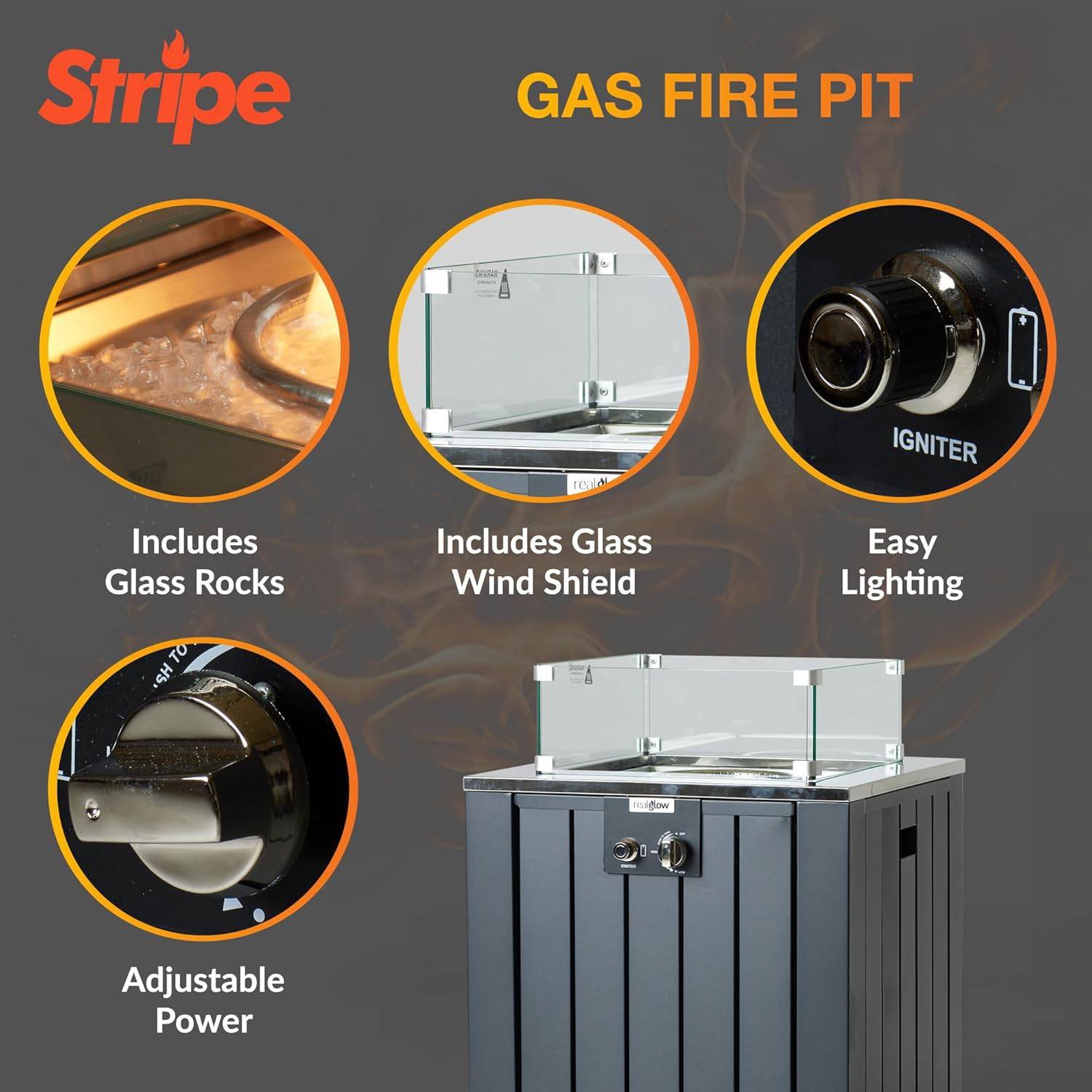 - Modern Garden Decor – Introduce a stylish way to warm up those memorable outdoor evenings all year round with REALGLOW’s Outdoor Gas Fire Pit! Our small fire pit offers a contemporary charm to any outdoor space and provides enough warmth to keep the good times burning.