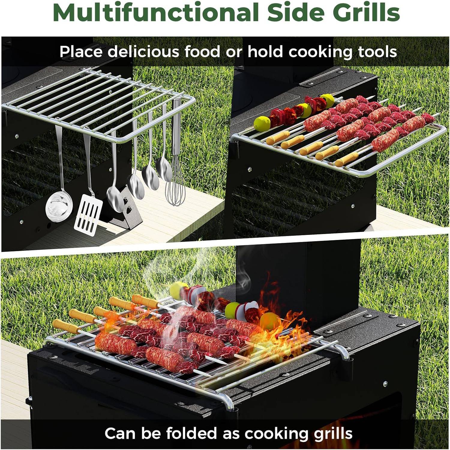 - VERSATILE SIDE GRILLS: This firewood burner comes with 2 side grills that can be easily mounted. You can use them to place your delectable dishes or hold your cooking tools. Plus, the grills can be folded to function as cooking grates, expanding the functionality of your outdoor cooking setup.